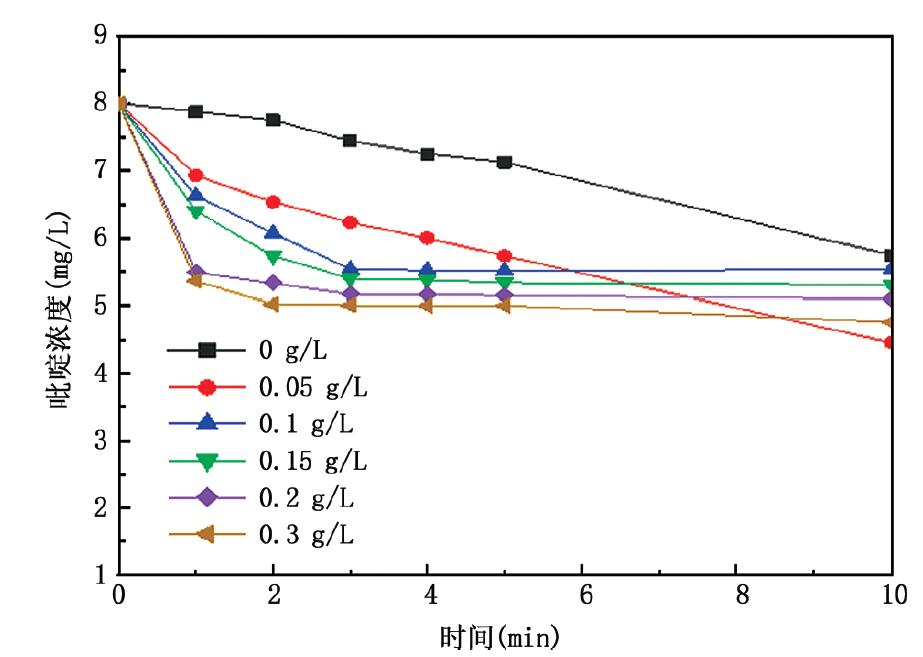 将制备的香蕉视频下载水取500 mL 置于烧杯中,加入所需质量的吡啶与磁性活性炭,通过搅拌桨不断搅拌。按照要求在0 min、1 min、2 min、3 min、4 min、5 min、10min 时取样,把取得的样品通过0. 45 微米的聚醚砜滤膜过滤去除催化剂,为了终止香蕉视频下载反应,再滴入一定量的亚硫酸钠溶液,得到的溶液作为待测样品保存。