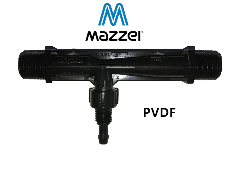 Mazzei射流器是带有内部混合叶片的差压喷射器。独特 设计很大程度地提高了喷油器效率,吸力和混合能力。射流器也没有活动部件,从而简化了维护,并且与效率较低的系统相比,它们的运行成本低得多。“ Mazzei”射流器工作原理“ Mazzei”为高性能文丘里型差压射流器,它采用一体式内部混合通道,将液体或气体转移或混合到溶液中。在射流器入口和出口给予足够的压力差时,射流器内腔会产生真空,于是从吸气口吸进液体或气体。“ Mazzei”射流器的特点1)使用压力范围广,只需要很小的差压便可以产生真空。2)其设计独特,保证了它是不可复制的。模仿和外观相似的产品根本不可能达到“Mazzei”的性能。3)美国 产品(U.S.Pat.5863128)。4)美国商标局授予“MAZZEI”为其独特的外观和形状的注册商标。该商标代表“ Mazzei”多少年来在客户中获得的美好信誉。5)用户使用“ Mazzei”射流器,可以得到优良有效的混合和接触效率。“ Mazzei”射流器的使用领域1)香蕉视频下载混合投加2)海洋馆、水族馆曝气、香蕉视频下载投加、蛋白撇除器3)污水厂曝气4)农业用施肥5)酸碱及药剂的投加6)食品厂食品添加剂的投加“ Mazzei”射流器的规格材质1)口径从 DN12~DN100(PVDF)2)口径从 DN12~DN300(不锈钢)Mazzei射流器安装说明1)射流器需要差压来产生吸力。 对于大多数型号,射流器的出口压力(背压)必须比入口压力低 25-30%,才会有比较明显 的吸力。2)射流器应该水平安装,或者垂直安装,但出口朝上。射流器吸入口可以是任何方向。3)为了获得稳定的吸力,射流器出口应该保持满管或一定的背压。4)射流器不能当作一种管支架。5)连接射流器的阀门和管件不能有扼流现象。它们的口径很起码应该与射流器的入口/出口 口径一样。6)可以加密封胶。但千万不能拧的过紧。7)吸气口的盖帽一定是用手拧紧,绝对不能用工具去拧,否则会损坏射流器。8)在射流器入口/出口安装压力表,这样可以监测射流器的运行工况。常用安装图射流器的安装都是围绕某个限流点来进行。如调压阀、门阀、球阀。这样射流器前后就会有 压差,从而产生真空,产生吸力(见图 1 和图 2 )。当主管道无法实现减压时,就需要安装升压泵,以产生足够的差压来运行射流器。建议在射流器出口安装止回阀以避免倒流。 DN40 及以下口径的射流器都带有止回阀。
